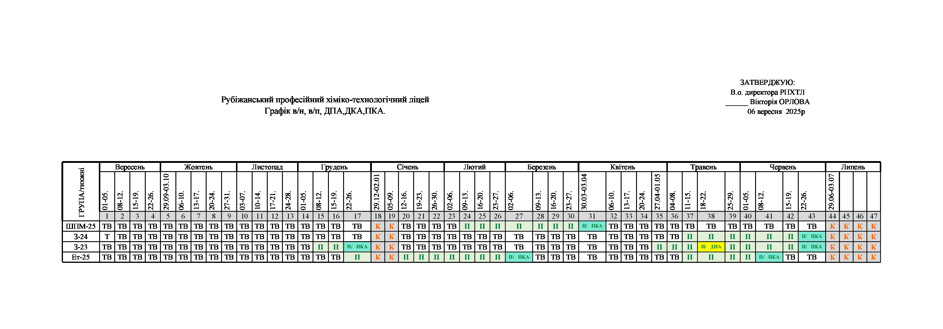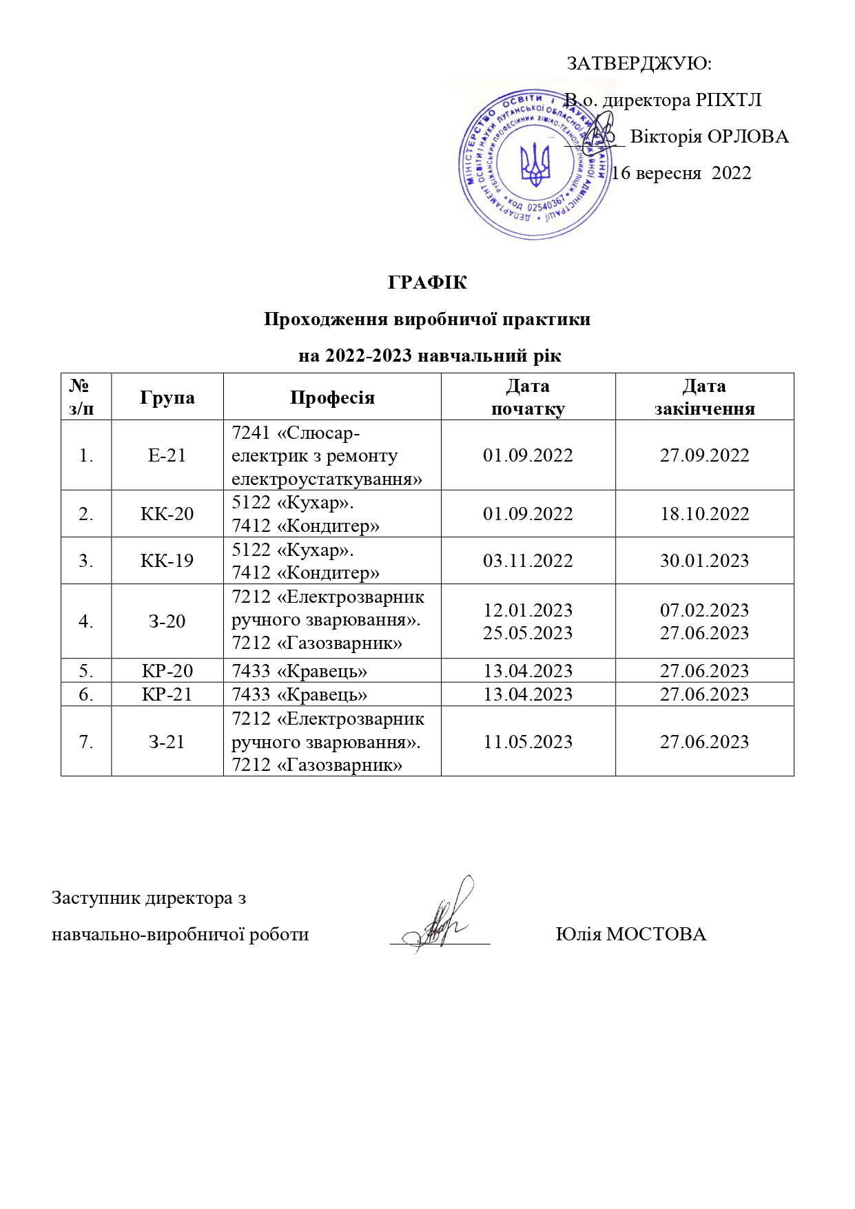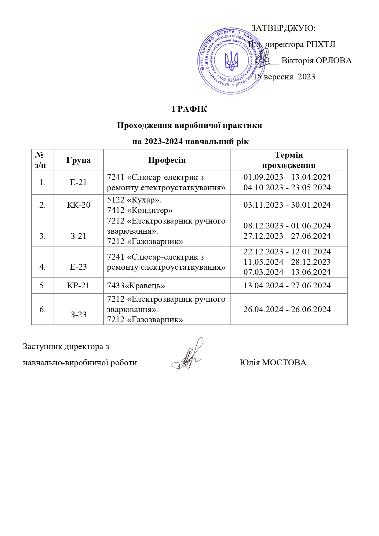 Навчально-виробничий процес в ліцеї здійснюється відповідно до робочих навчальних планів та програм, нормативно-правових актів та навчально-методичних документів з професійної (професійно-технічної) освіти.